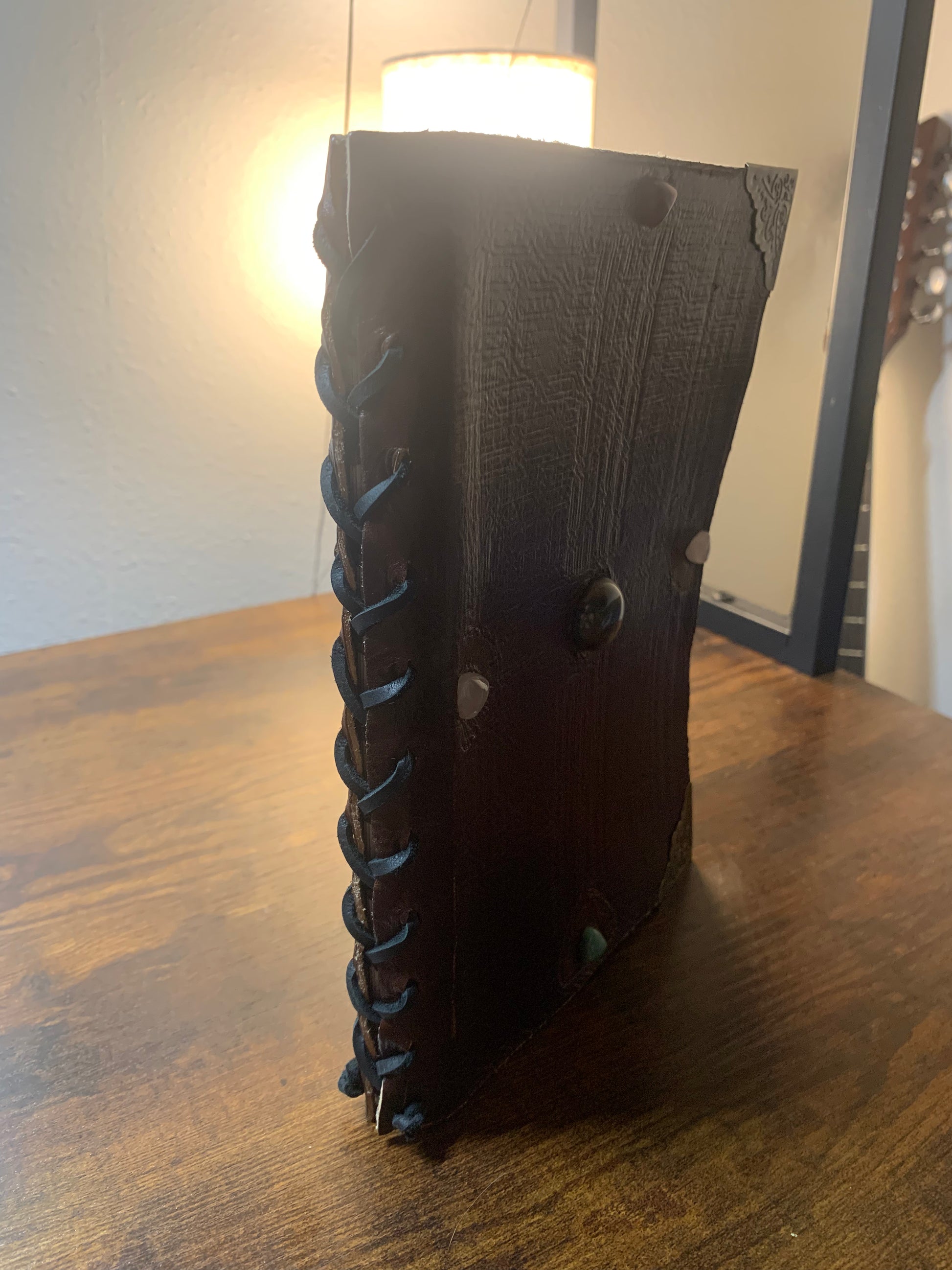 made with authentic vegetable tanned dark brown leather, dazzled by some synthetically created gems (not glass).