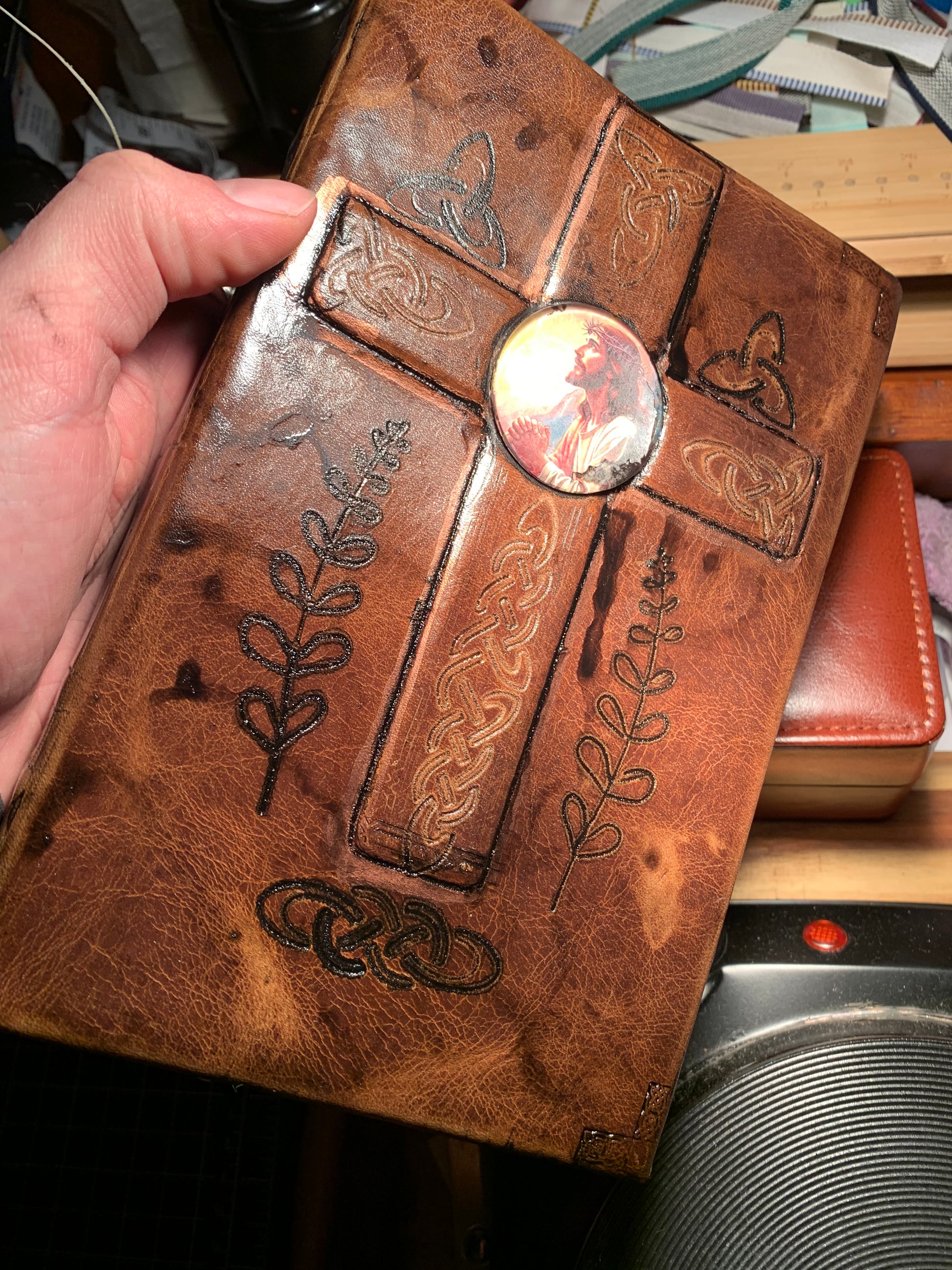 Made with real vegetable tanned leather, tooled and dyed by hand.