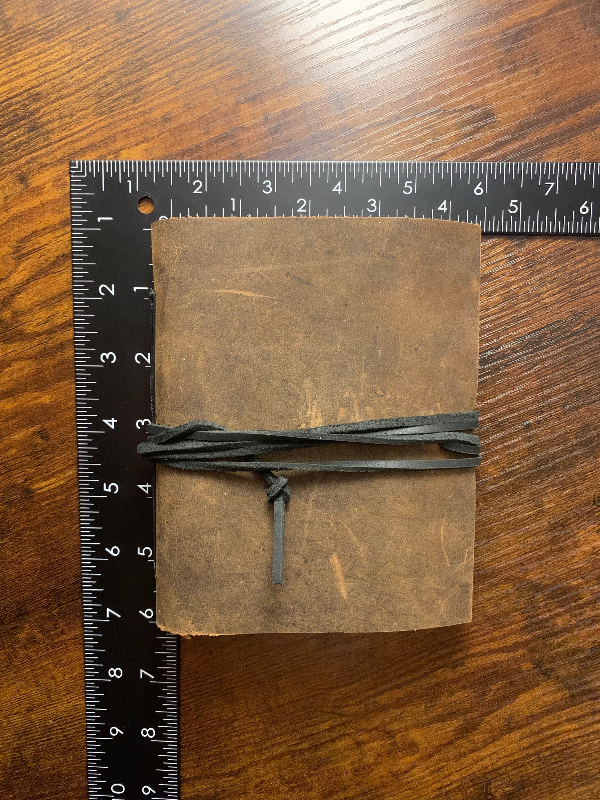 Simple Buffalo Leather Travel Journal gray thread, now on display at the Ferry County Food Co-op in Republic, WA!